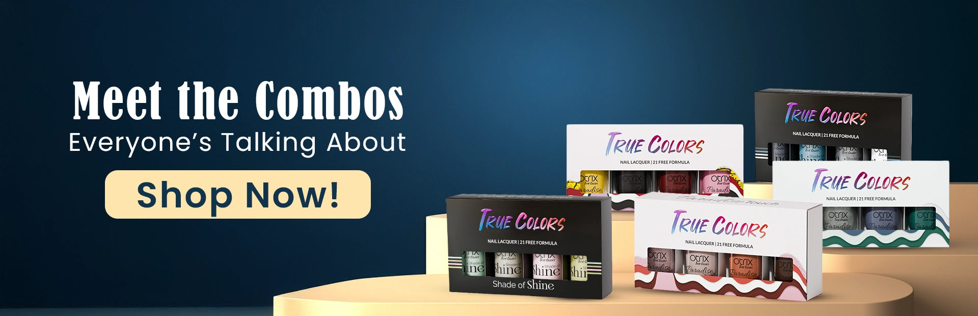 True Colors Shade of Shine - Fresh Aura Nail Polish Combo (Set of 4 Shades)Salon Ready Shine Long Lasting Dries QuicklyShine up your nails with the True Colors Shade of Shine Fresh Aura Nail Polish Combo. This stunning set features shades that are perfect for adding a touch of brilliance to every look. Infused with Vitamin E and almond oil, these Nail Polish nourish...